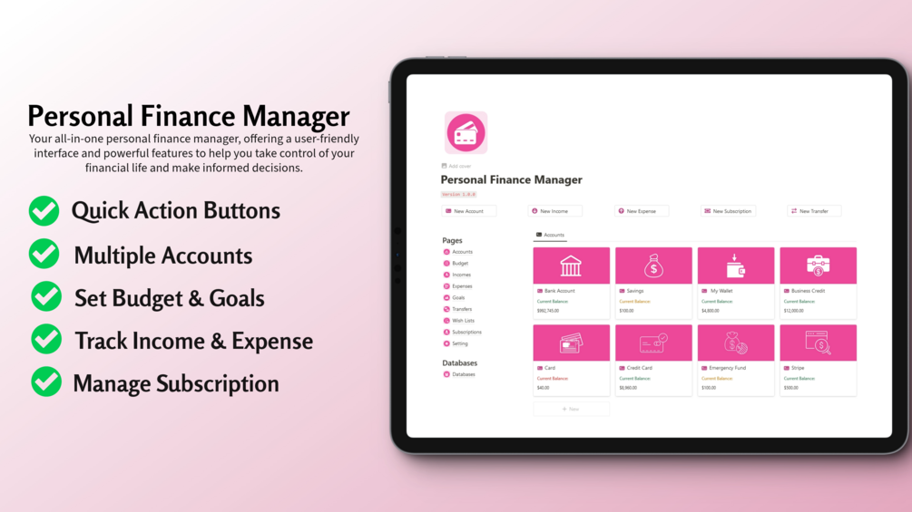 Tired of juggling multiple apps and spreadsheets to manage your finances? Looking for a seamless, all-in-one solution to effortlessly track your financial life? Look no further! The Notion Personal Finance Manager is here to revolutionize the way you manage your money.